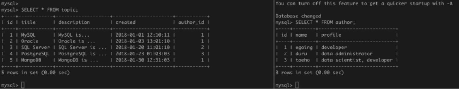 mysql> SELECT * FROM topic LEFT JOIN author ON topic.author_id = author.id;